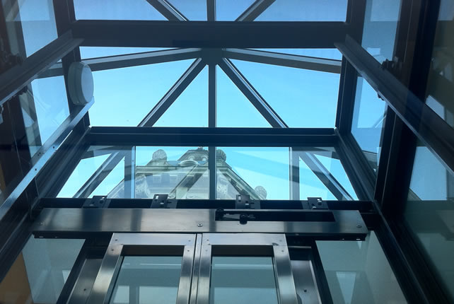 This innovation has revolutionised the Hydraulic lift market and since this design was launched we have installed hundreds of these lifts in many different environments, from hospitals to individual dwellings, from schools to care homes. The main advantages of a hydraulic lift are, quieter operation, very smooth ride comfort and to many, the most important of all, they are very cost effective to purchase and maintain. In the low rise market (up to and including 4 floors) the Hydraulic MRL tends to be about 10% cheaper to purchase than a traction MRL. Many will tell you that the running costs are much higher than a traction MRL though, however, when this is calculated that is not strictly true. As a hydraulic lift only uses it motor to operate the hydraulic oil pump, the motor only ever starts when the lift is going up and therefore, there are half as many motor starts as a traction lift. Therefore with just over twice the starting current as a traction lift, the hydraulic is almost as efficient, as it may be twice as thirsty but it only drinks half as much.